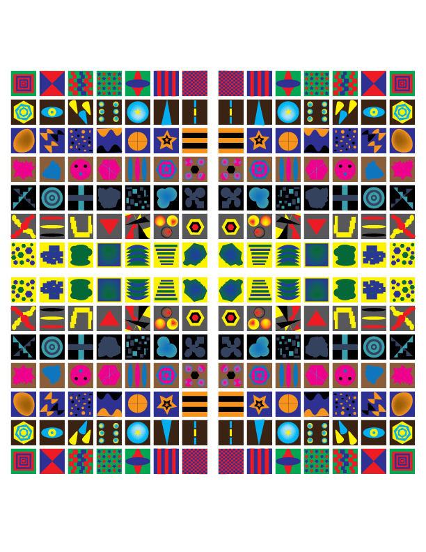 For this project, I didn’t have any specific design ideas. The only thing I knew is that I wanted every box to have different shapes and patterns made from shapes and the pen tool. For the colors, I used with the shapes patterns, I themed them around teams I follow. As for why I choose the background colors I did, I mostly tried to find basic colors that would help boxes with negative space pop. Making sure the boxes looked evenly spaced during the whole process was also something I constantly kept in mind.